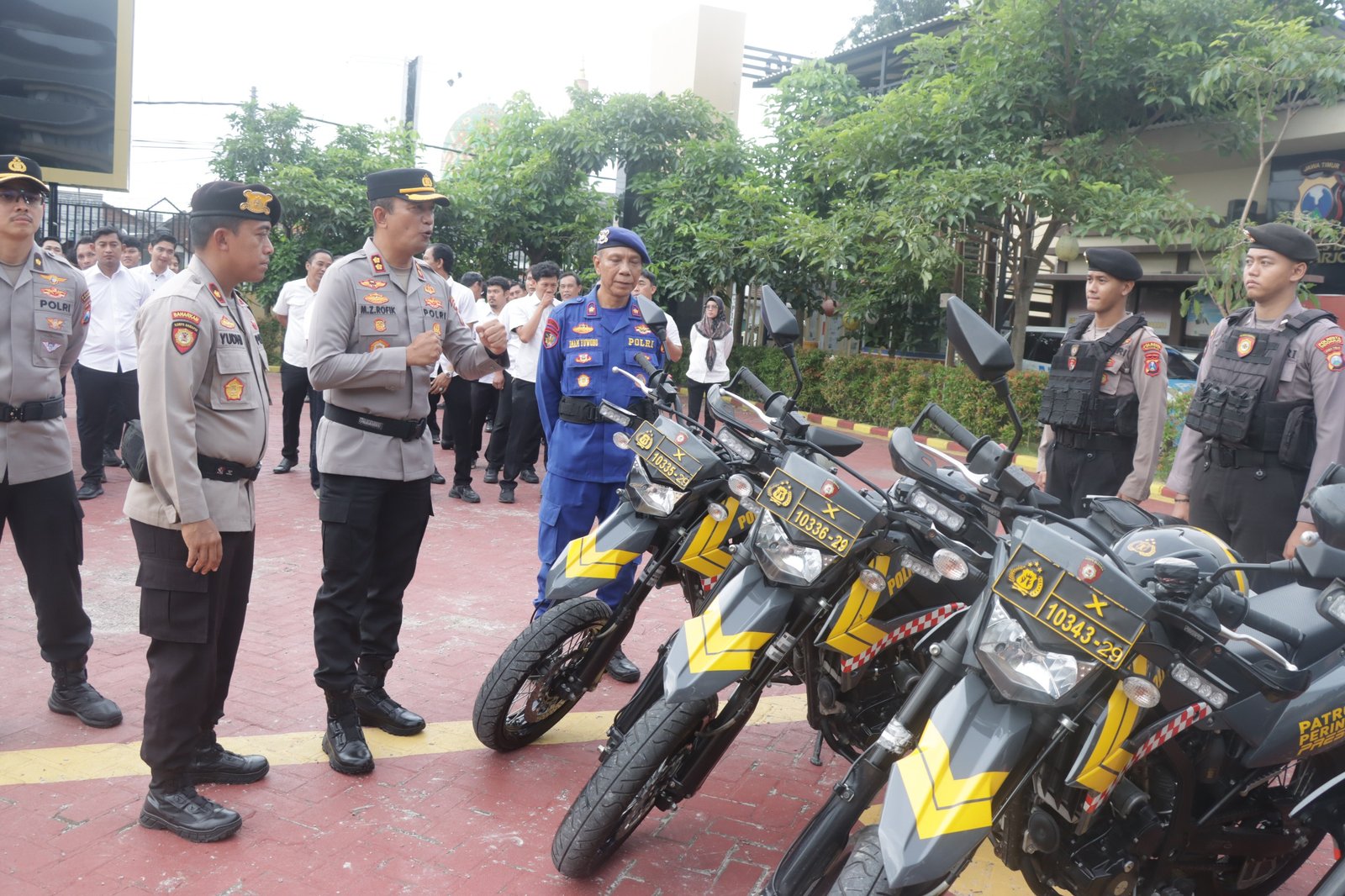 Wakapolresta Sidoarjo juga melakukan pengecekan kesiapan 1.200 personel yang akan diturunkan serta sarana maupun prasarana yang akan digunakan nanti.